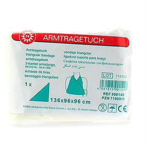 Armslynge mitella 96x96x136 cm – 1 stk Noba armslynge Mitella er en trekantet armslynge / armklæde. Armslyngen kan anvendes til førstehjælp som forbinding, for at holde på gazekompres m.m., til støtte af armen eller til beskyttelse mod snavs og lignende. (Læs mere)