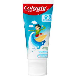 Colgate Kids 6+ Training Tandpasta gør det sjovt for barnet at børste selv Denne Colgate tandpasta er egnet til børn mellem 6-9 år, og er gjort ekstra børnevenlig med en mild smag og en formel, der skifter farve under børstning.Tandpastaen indeholder flou (Læs mere)