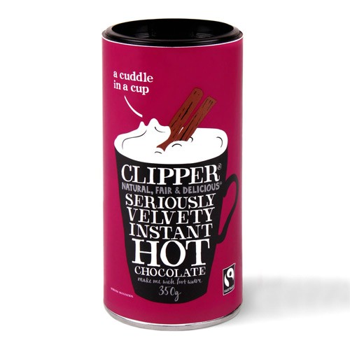 Fairtrade Instant Varm Chokolade En blød og tilfredsstillende ren nydelse. Hver kop chokolade indeholder blot et halvt gram fedt. Clipper anvænder kun de bedste råvarer. Dette produkt er Fairtrade mærket. Â Til en perfekt kop: Bland 3-4 tsk. kakao i en k (Læs mere)