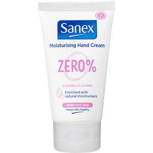 Sanex Zero% Sensitive Skin Moisturising Hand Cream plejer hænderne dagligtDenne håndcreme fra Sanex Zero% serien er formuleret til at passe, pleje og beskytte dine hænder fra udtørring og irritation hver dag, også selvom du ofte vasker hænder. Cremen inde (Læs mere)